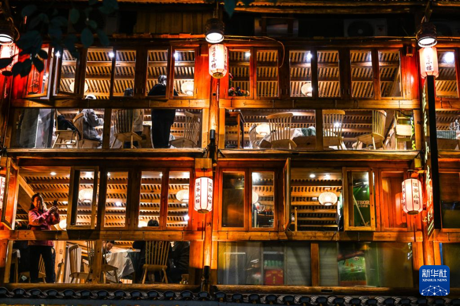 游客在贵州省黎平县肇兴侗寨一家餐厅就餐(12月19日摄)。新华社记者杨文斌 摄