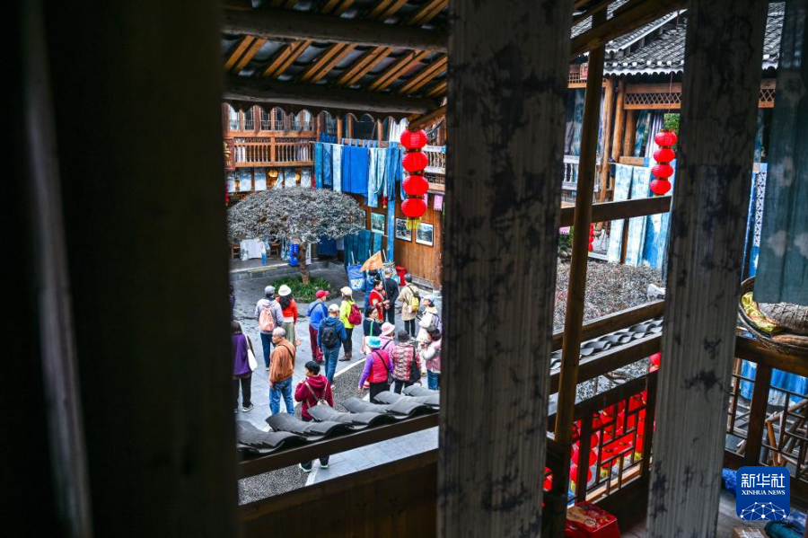 游客在贵州省黎平县肇兴侗寨侗品源传统工艺农民专业合作社参观(12月19日摄)。新华社记者杨文斌 摄
