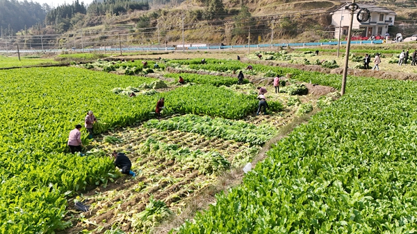 采收期间,基地每天吸纳附近20余名农户前来务工,务工农户日均收入达120元。“在家门口就能挣钱,还能照顾老人和孩子,特别方便。”正在采收雪里蕻的农户笑着说道。此次雪里蕻采收周期约为一个星期,预计将为务工农户带来可观的劳务收入,有效带动当地农户增收致富。