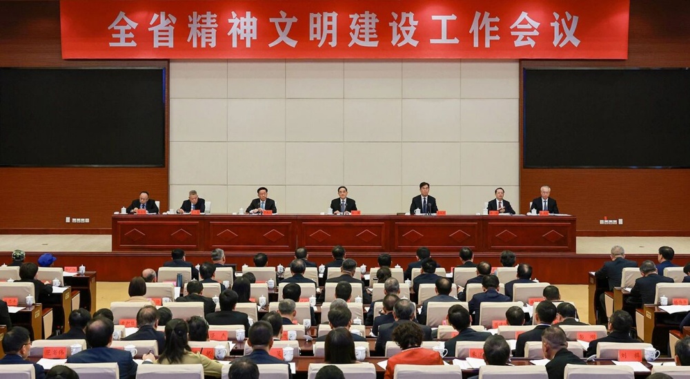 徐麟强调,要抓好学习宣传贯彻习近平新时代中国特色社会主义思想这个首要政治任务,坚持不懈用党的创新理论培根铸魂、凝聚人心。要注重以文化人、以文育人,丰富文体活动、打造文艺精品、挖掘用好特色文化资源、完善公共文化服务,持续丰富人民精神世界,筑牢向上向善向美的精神底座。要贯通协同推进文明培育、文明实践、文明创建,强化群众参与主体作用,聚焦婚嫁新风、殡葬新风、节俭新风等重点深化移风易俗,丰富内容、创新形式推动文明实践有形有效覆盖扩面提质,提升文明城市、文明村镇、文明单位、文明家庭和文明校园创建质效,绵绵用力养成文明习惯、形成文明风尚。要把加强党的领导贯穿精神文明建设各方面全过程,突出党员干部带头,发挥先进典型示范作用,广泛深入动员群众,营造全社会人人参与、人人践行的浓厚氛围。