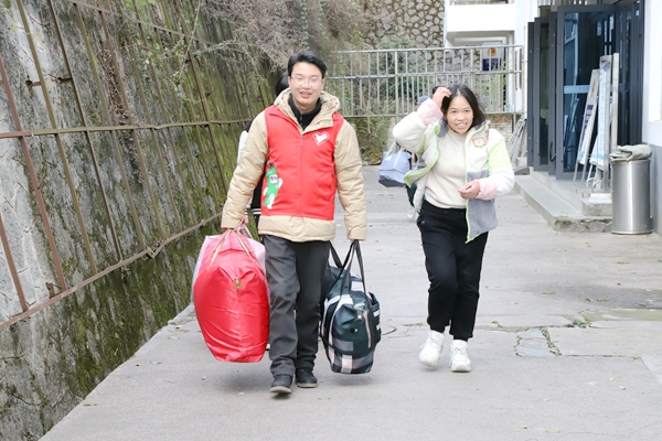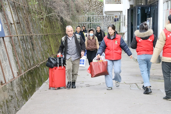 “嬢嬢,欢迎回家!您抱着娃儿不方便,我来帮您拎行李,咱们慢慢走!”在施秉火车站出站口,一抹抹亮眼的“青春志愿红”格外醒目。这是杨柳塘镇新时代文明实践所(站)组织开展的“温暖回家路·文明伴我行”志愿服务活动现场,志愿者们穿梭在人流中,主动为携带大件行李、怀抱孩童的旅客搭把手,耐心引导旅客有序出站,用热情服务驱散旅途疲惫。