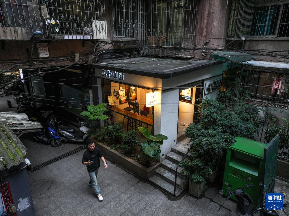 藏在贵阳市云岩区居民楼内的黑石咖啡店(2025年6月23日摄,无人机照片)。新华社记者杨文斌 摄