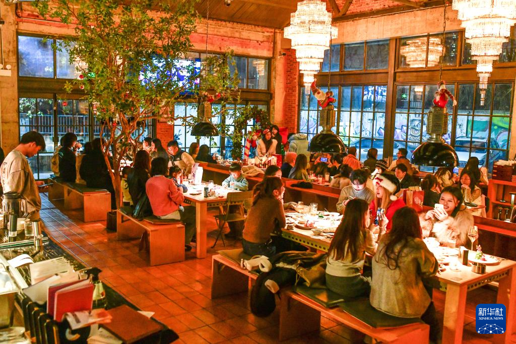 顾客在贵阳市南明区体育路行匠厨房餐厅用餐(2025年12月25日摄)。新华社记者杨文斌 摄