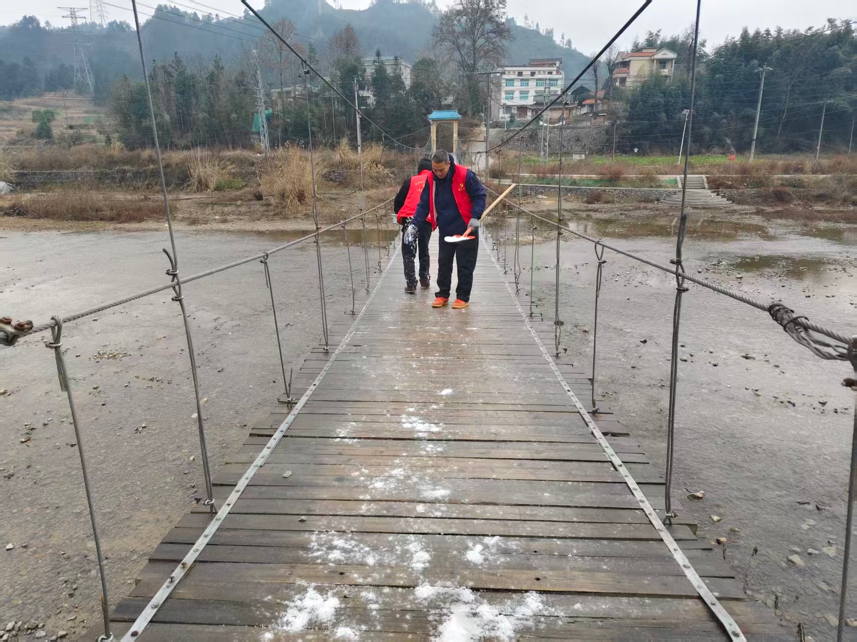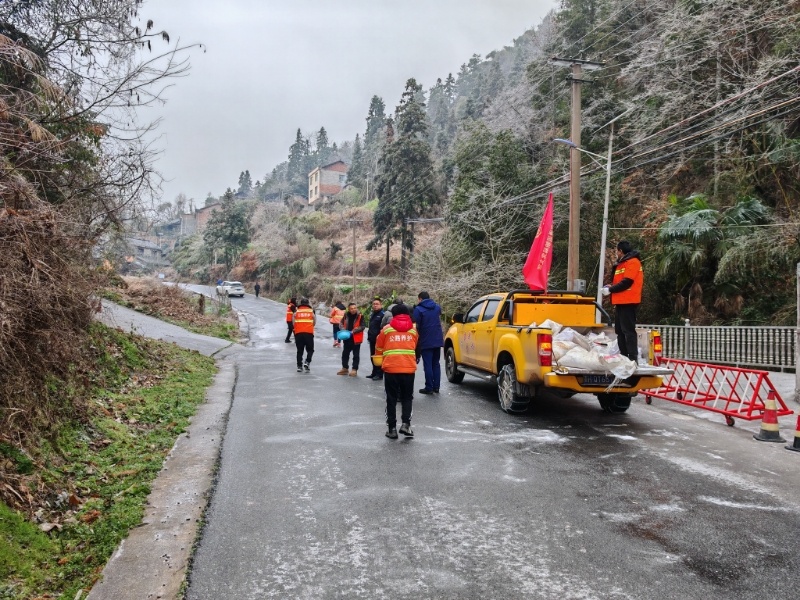 二是设点劝导,有效降低道路交通安全风险。对于湿滑路段、凝冻严重且暂不具备通行条件的村组道路,特别是响水至辽家坳等路段,各村果断采取源头管控措施。在关键路口规范设置临时劝导点,放置醒目“道路凝冻 禁止通行”警示牌,并安排村干部、志愿者值守,对试图通行的车辆和行人进行耐心劝返,并主动提供绕行建议。此举从源头上杜绝了车辆冒险通行行为,凝冻期间全乡未发生一起因道路凝冻导致的伤亡交通事故,切实守护了群众出行安全。截至目前,期间在全乡3处关键路口设置临时劝导点,累计出动值守人员35人次,成功劝返意图通行车辆48辆。