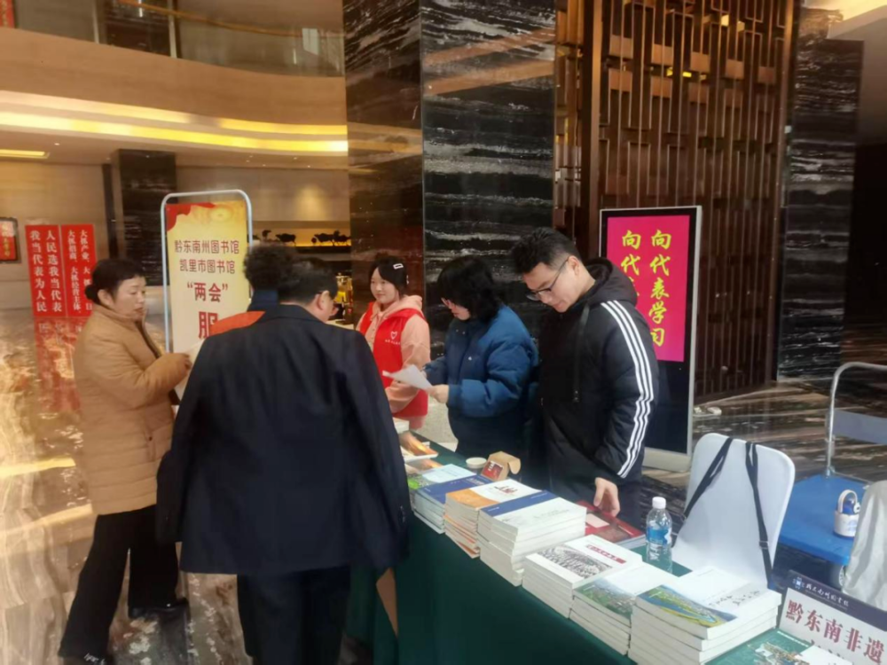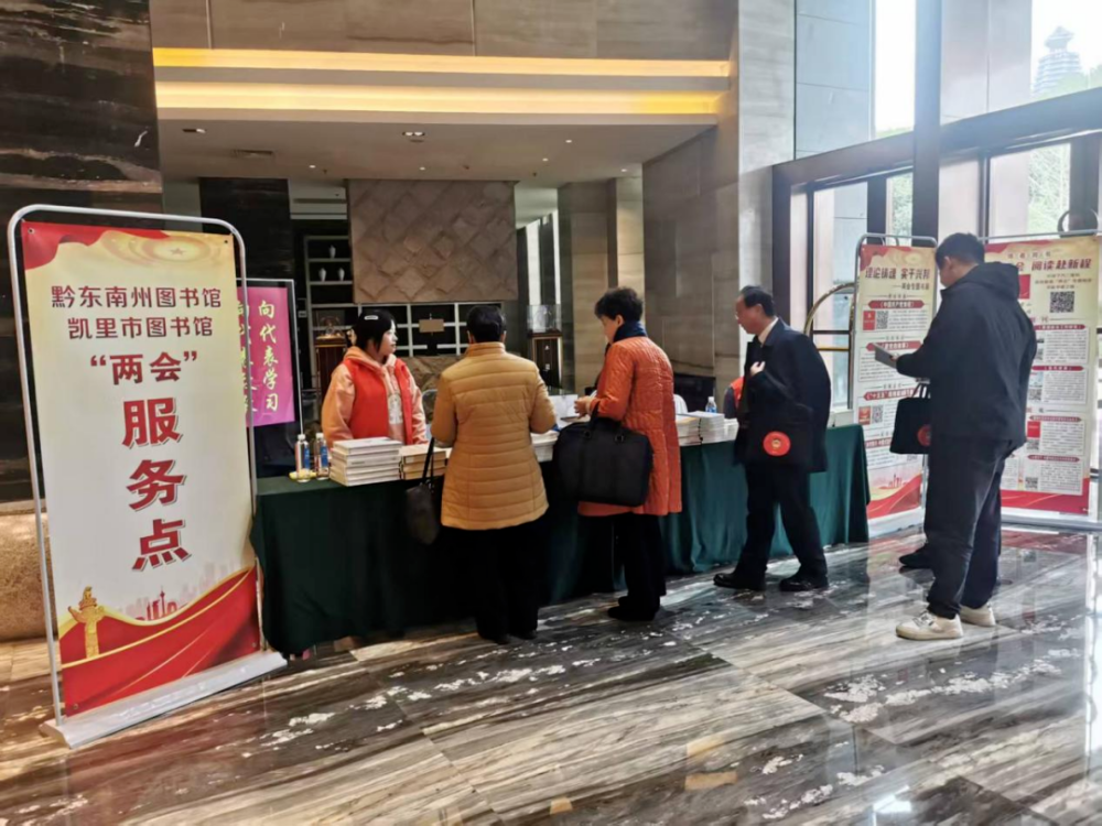 服务工作 春潮涌动处,奋进正当时。在2026年全州“两会”召开之际,黔东南州图书馆携手凯里市图书馆紧扣会议主题,立足公共文化服务职能,精心组建了“两会”信息咨询服务团队,向与会代表、委员提供全方位、多层次的信息服务,涵盖“两会”专题电子书刊查阅、黔东南特色资源交流、文献信息咨询、资料打印等,为代表委员参政议政、建言献策提供坚实的文献信息支撑和优质的文化服务保障,让书香浸润履职之路。