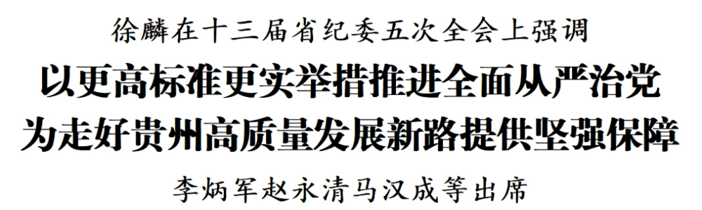 2月1日,十三届省纪委五次全会在贵阳召开。省委书记徐麟出席会议并讲话。他强调,要深入学习贯彻习近平总书记在二十届中央纪委五次全会上的重要讲话精神,进一步贯彻落实习近平总书记在贵州考察时的重要讲话精神,以更高标准、更实举措推进全面从严治党,为走好“十五五”时期贵州高质量发展新路提供坚强保障。