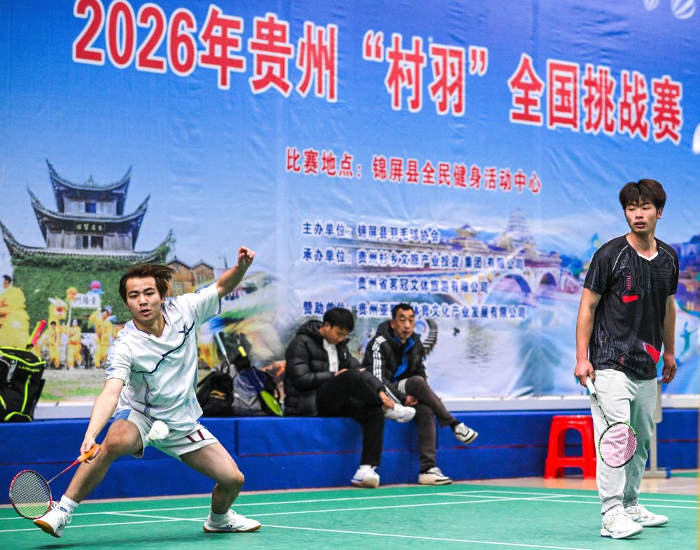 ↑参赛选手在贵州省锦屏县全民健身活动中心参加2026年贵州“村羽”全国挑战赛(2026年1月22日摄)。