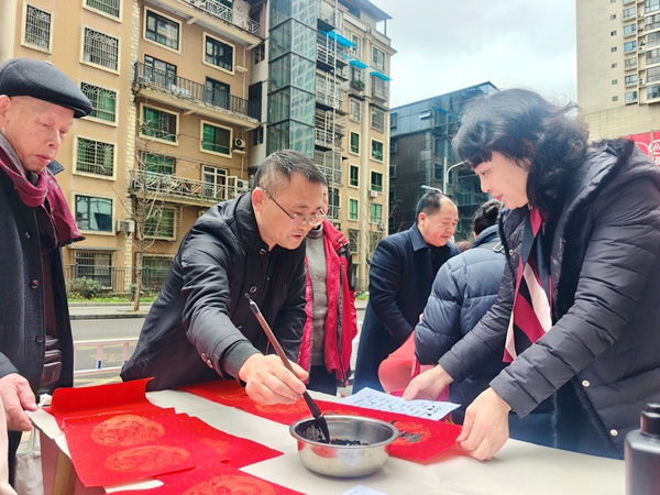 “墨香传福,睦邻迎春”手写春联活动同样吸引了不少居民驻足。书法爱好者们挥毫泼墨,将书法艺术与春联习俗完美融合,几十副对联和福字,承载着新春的美好祝福,传递到居民手中。