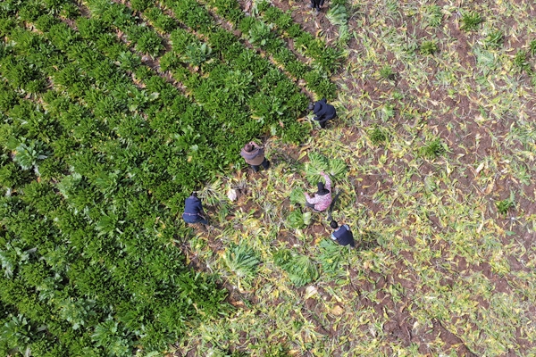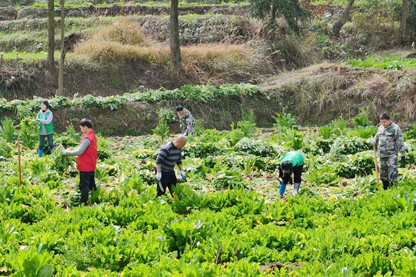 “今年我们合作社带动种植雪里蕻600亩,实行订单保底收购,亩产9000到12000斤,收购价0.35元一斤,产量稳、销路畅、收益有保障。从育苗、种植到采收,全程提供技术指导,带动群众就近务工增收。”大地方村村支书严兴龙说。