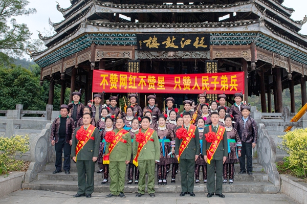 3月21日,从江县举行三月拥军优属主题活动。当地侗族群众“不赞网红不赞星,只赞人民子弟兵”,与退伍军人欢聚一堂,通过座谈交流、民俗巡游等形式,共叙军民鱼水深情。