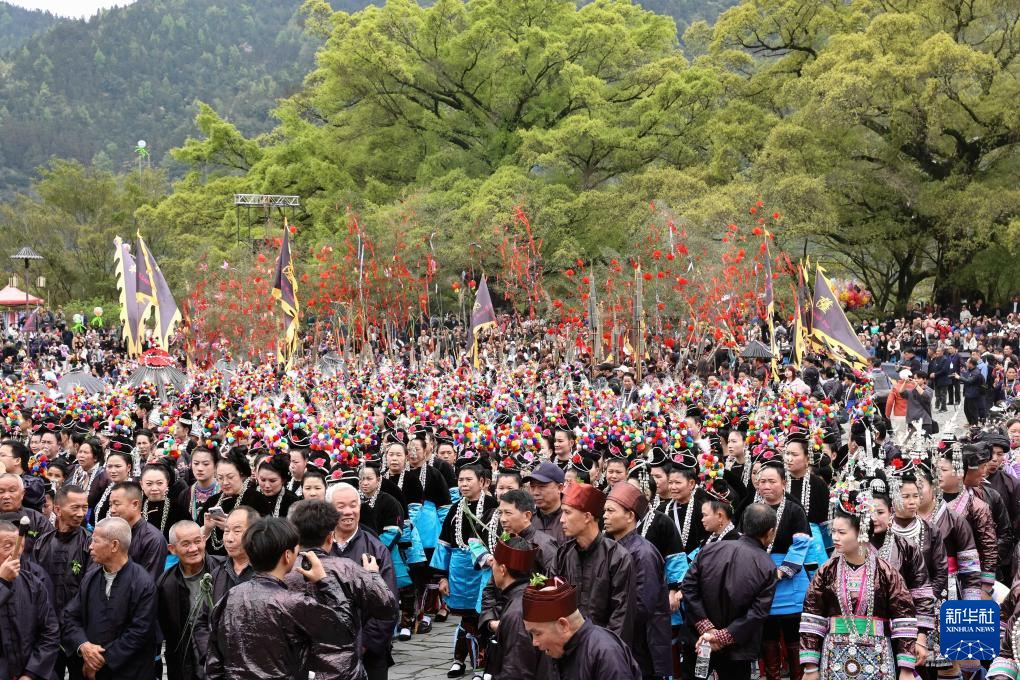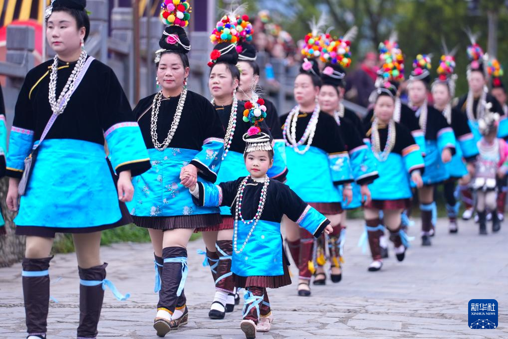 3月28日,侗族群众在贵州省榕江县三宝侗寨参加“萨玛节”活动。新华社发(李长华 摄)