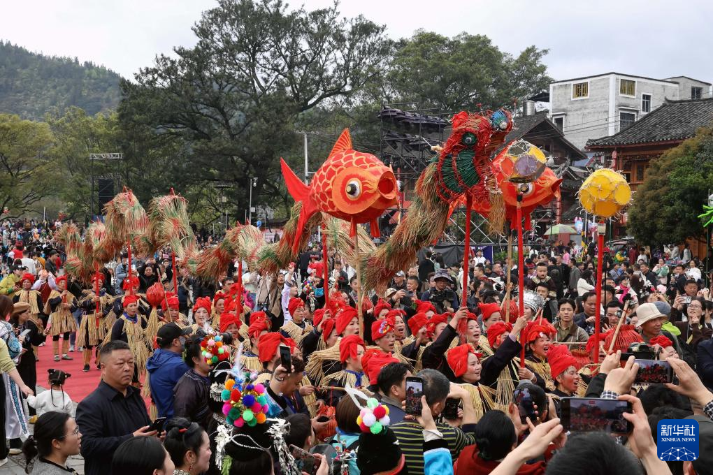 3月28日,侗族群众在贵州省榕江县三宝侗寨参加“萨玛节”活动。新华社发(韦贵金 摄)
