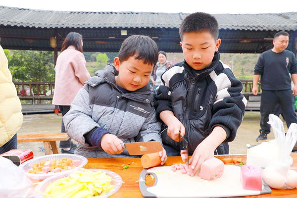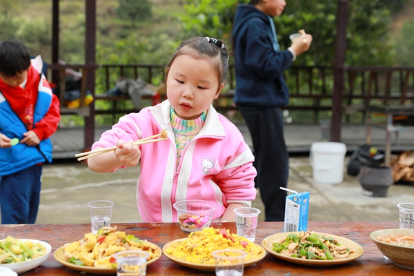 炊烟缭绕中,一道道色香味俱全的菜肴陆续出锅,农场里满是饭菜的香气与孩子们的欢笑声。在青山环绕间,大家围坐在一起,品尝着自己亲手制作的美食,分享着劳动带来的喜悦与成就感,共同感受亲子相伴的美好时光。
