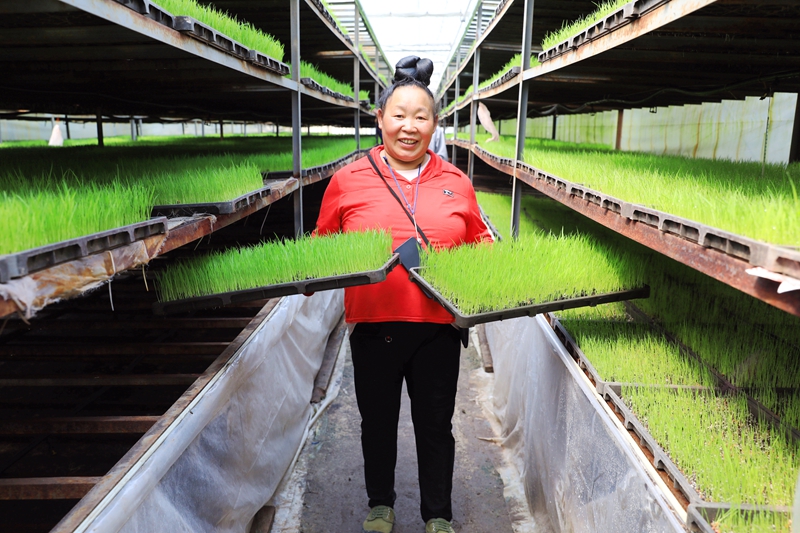 基地内,物联网调控大棚、一体化托苗设备、药剂自动化拌种机械等现代化设施全速运转,构建起全流程标准化、科学化、精细化育秧管理体系。在基地参与实践实习的大学生苗锐,正和工作人员一同忙碌在田间地头,默契配合完成播种育苗、苗期巡检、日常养护等各项工作。“依托物联网实时监测、智能设备精准调控等现代农业技术,种子发芽率得到显著提升,培育出的秧苗根系壮、品相优、抗性强。”苗锐坦言,科技育苗不仅保障秧苗品质,还大幅降低农户种植管护成本、省时又省力,实打实帮助乡亲们稳粮增收,亲身实践也让他真切见识到现代农业转型升级的强劲活力与便捷优势。