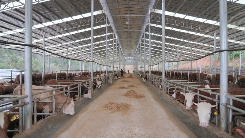 “肉牛养殖场需要地理条件很好的地方,这里的老百姓也给予我们大量的支持,我们租来了两个牛场,总占地面积60亩,养了八百头牛,计划扩大到一千头以上,销往重庆、上海、广州各地。”贵州聚希源农业有限公司负责人李瑞刚笑着说道,语气里满是欢喜。他介绍,基地坚持标准化、精细化养殖,从良种引进、草料配比到疫病防控,全程严格按照规范操作,严把肉牛品质关,凭借优良的肉质赢得了市场认可,也让养殖收入稳步上涨。