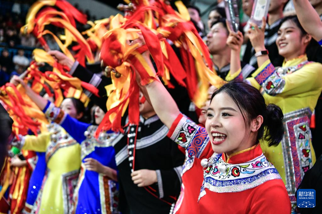 4月11日,观众在比赛现场为球队加油助威。新华社记者杨文斌 摄