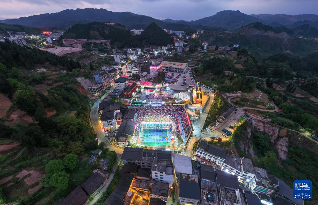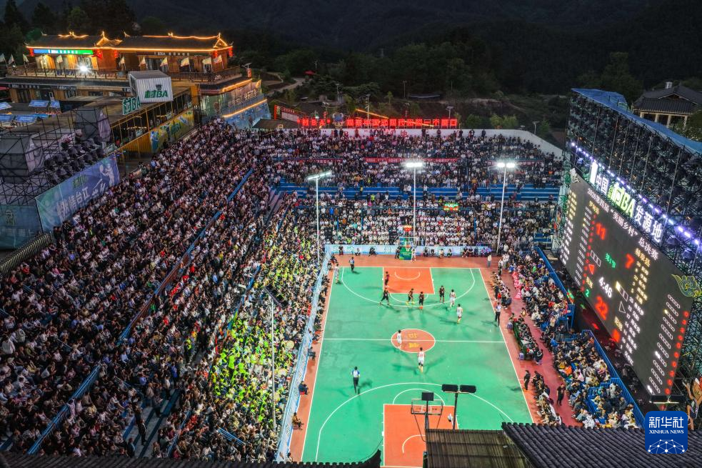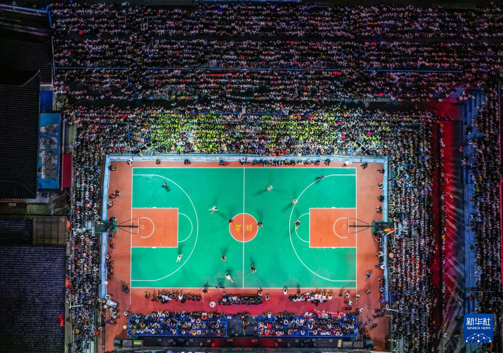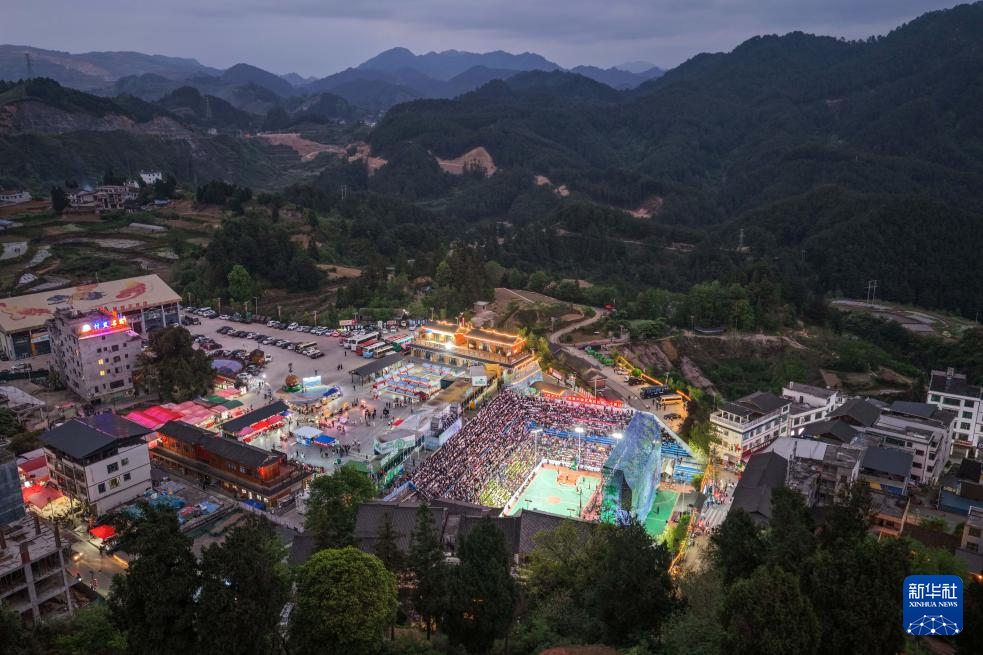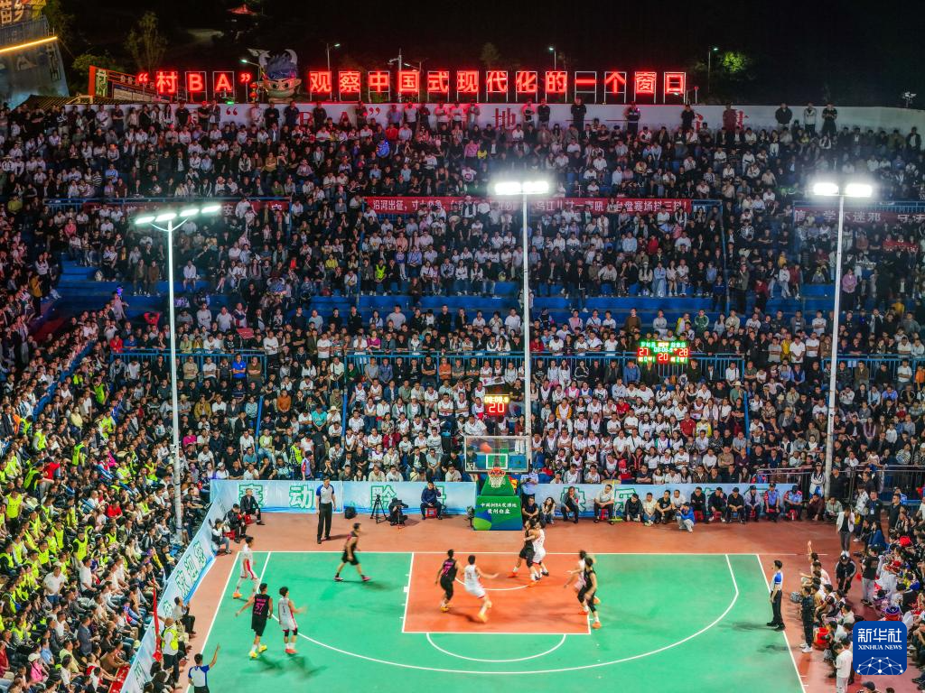 这是4月11日拍摄的贵州“村BA”总决赛现场(无人机照片)。新华社记者杨文斌 摄