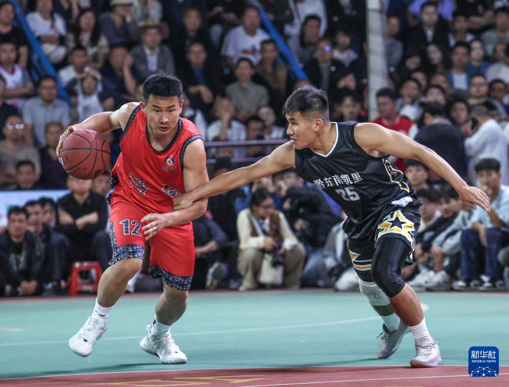 4月11日,沿河队球员杨钊(左)与凯里队球员杨鼎在比赛中。新华社记者杨文斌 摄