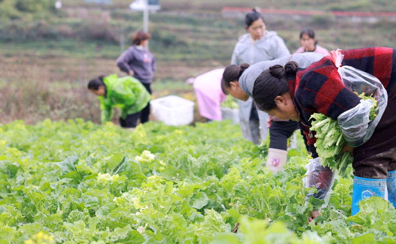 眼下,正是春季蔬菜采收上市的时期,在贵州省黔东南州麻江县坝芒乡蔬菜种植基地,工人们正集中采收春菜,直销大湾区。