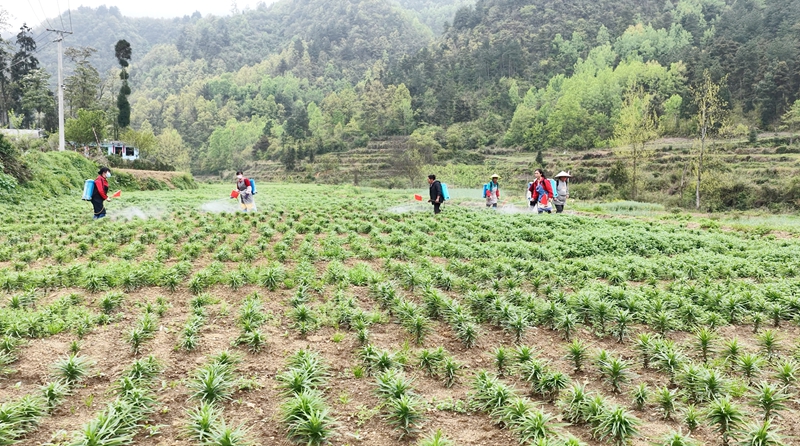 另一边,在坝芒乡坝河村百合种植基地,30余名工人抢抓农时开展除草、施肥等管护作业。