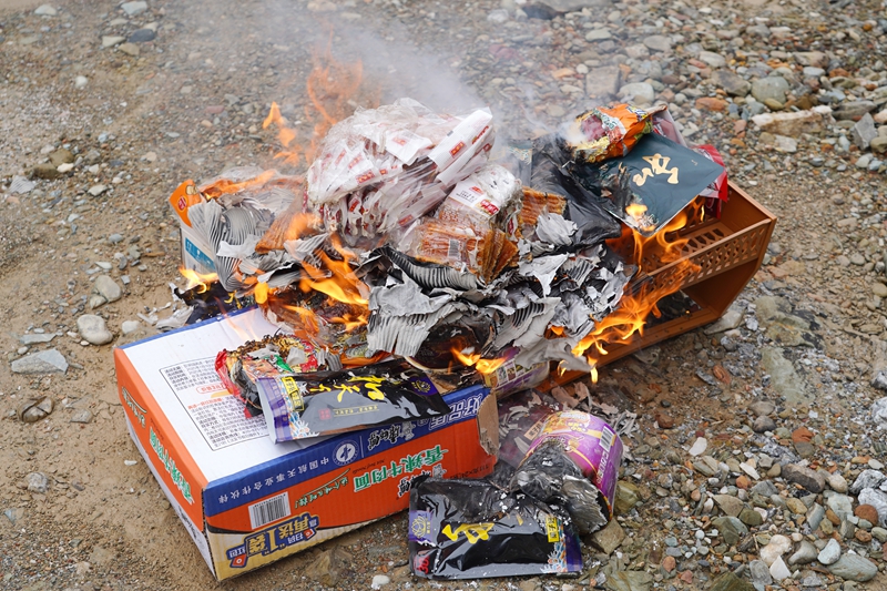 销毁现场,工作人员严格落实安全防护措施,在指定的合规焚烧区域对上述食品进行集中销毁,燃烧后的残渣按照规定进行处理。销毁过程全程监督核对,确保销毁彻底、不留死角,坚决防止过期食品被误售、误食。同时,通过集中处理,有效避免食品随意丢弃可能造成的二次污染。