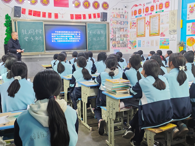 为深入践行总体国家安全观,全面落实“统筹发展和安全”重大要求,在第十一个全民国家安全教育日来临之际,往洞镇成立普法宣传组,走进往洞中学、集镇街区,开展反诈、禁毒、反邪、扫黑除恶暨国家安全主题普法宣传活动,通过“校园+街区”双线发力,让安全理念扎根青少年心中、走进千家万户,筑牢全镇平安建设坚实防线。