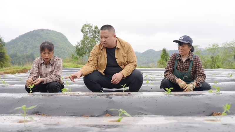 与此同时,尚寨土家族乡桅杆坪辣椒种植示范点同样繁忙有序。农户们分工协作、默契配合,打窝、喷洒地根水、放苗、栽种等移栽环节有条不紊地推进。同时,农技人员深入田间地头开展移栽技术指导。“有农技人员给我们讲种植技术,种出来的产量高、效益好,我们都乐意种。”村民杨胜英一边放苗一边说,今年计划种3亩辣椒,自己年纪大了,外出务工难度大,在家种辣椒还有收入,感觉生活有盼头。