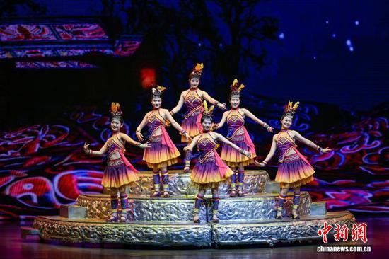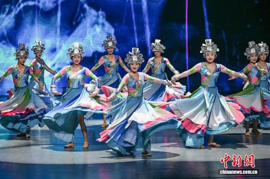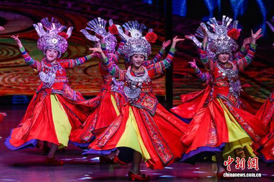 4月16日晚,苗族舞蹈《金绣银饰》。中新社记者瞿宏伦 摄