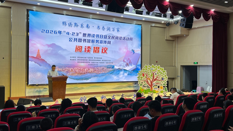春风翻书页,书香满全城。在第31个“世界读书日”来临之际,2026年4·23世界读书日暨全民阅读活动周、公共图书馆服务宣传周于4月19日在黔东南州图书馆正式启动!本次活动以“锦绣黔东南·书香润万家”为主题,旨在深入贯彻落实《全民阅读促进条例》,充分发挥公共图书馆在全民阅读中的主阵地作用,在全社会营造营造 “爱读书、读好书、善读书”的浓厚社会氛围,进一步发挥图书馆的公共服务职能,助力书香社会建设。