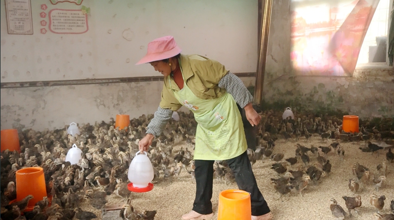 “每天早上七点钟,先上来观察小鸡的情况,及时喂药,料有没有也要及时加,随时保持温度。”麻江县贤昌镇贤昌村综治员顾光美说。