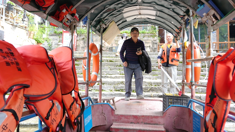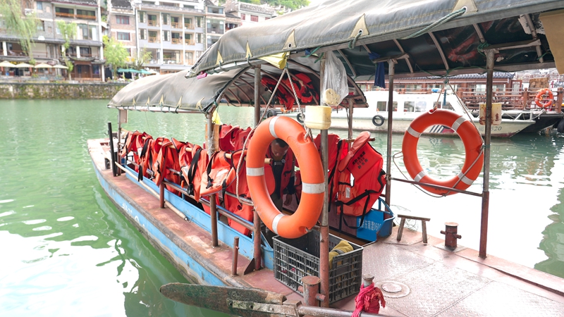面对乘船游客,陈再军礼貌地提醒他们穿戴救生衣,还化身“古城向导”向游客推荐游玩路线和打卡点,一元惠民摆渡体验,深受各地游客喜爱的同时,也让旅途多了一份烟火温情。