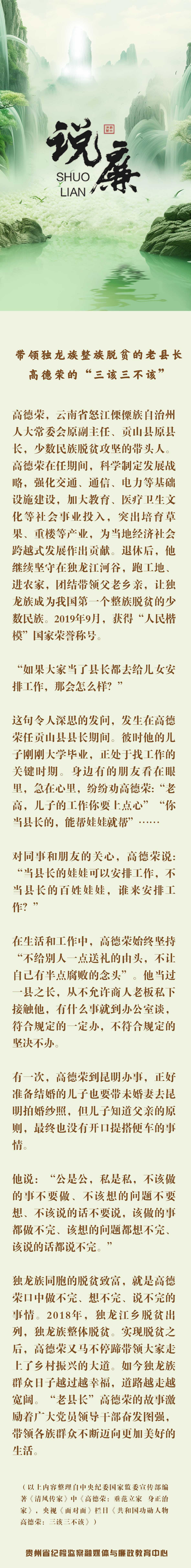 带领独龙族整族脱贫的老县长高德荣的“三该三不该”