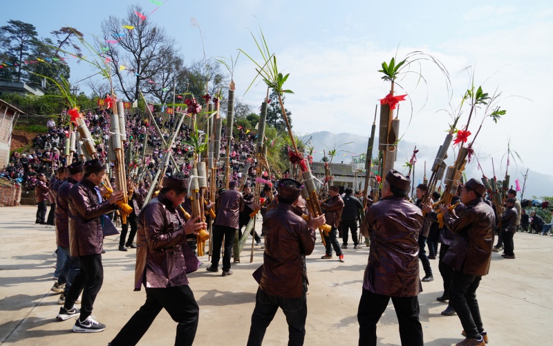 芦笙是苗族文化的根,承载着千年的信仰与记忆。活动伊始,来自周边村寨的七支芦笙队伍同台竞技、各展风采。芦笙齐鸣,声震山谷,气势磅礴的合奏仿佛大地的心跳,唤醒了沉睡的冬土,也点燃了全场的热情。