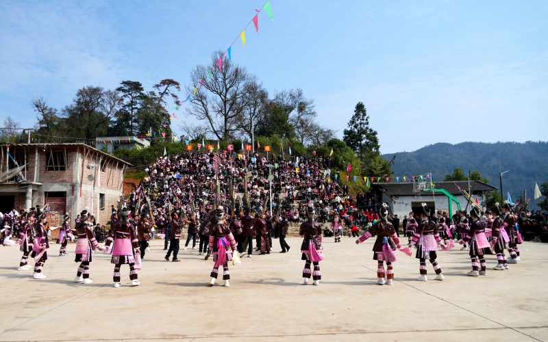 2月20日,农历正月初四,从江县下江镇新华村人头攒动、笙歌阵阵。全村老少身着节日盛装,舞袖翩跹,整个村寨沉浸在一片浓郁的年味与民族风情之中。