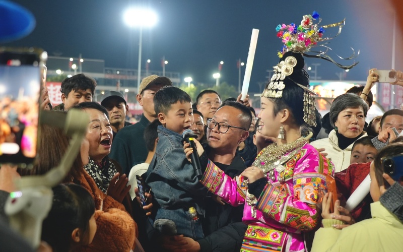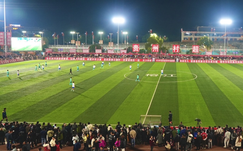 夜幕降临,球场依旧灯火璀璨、热闹不减。花式鼓乐《爱我中华》、侗族琵琶歌《心心相印》、歌曲《更美的家乡》等民族文艺节目轮番上演,悠扬歌声、曼妙舞姿展现出浓郁的民族风情与新春气象。活动尾声,绚烂烟花腾空而起,在夜空绽放出五彩斑斓的焰火,与球场灯光、观众笑脸交相辉映,为这场新春足球盛宴画上圆满句号。