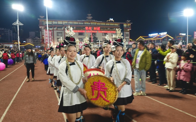 除了精彩赛事,新春主题特色拉拉队巡游成为亮眼风景。拉拉队员们身着盛装,踏着欢快节奏入场,一边带来灵动舞蹈,一边向观众分享特色美食。独具乡土气息与新春特色的表演,将赛场气氛不断推向高潮,让各地游客沉浸式感受乡村民俗的独特魅力。“新春看这样的表演,喜庆又热闹,真切感受到了贵州乡村的年味儿。”来自广西的游客张林赞叹道。
