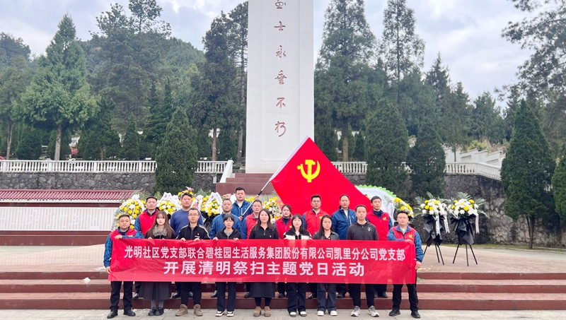 为深切缅怀革命先烈,弘扬爱国主义精神,4月3日下午,西门街道光明社区党支部联合碧桂园生活服务集团股份有限公司凯里分公司党支部,组织辖区党员、退役军人及青年代表共20余人,赴凯里市金泉湖烈士陵园开展清明祭英烈主题活动。