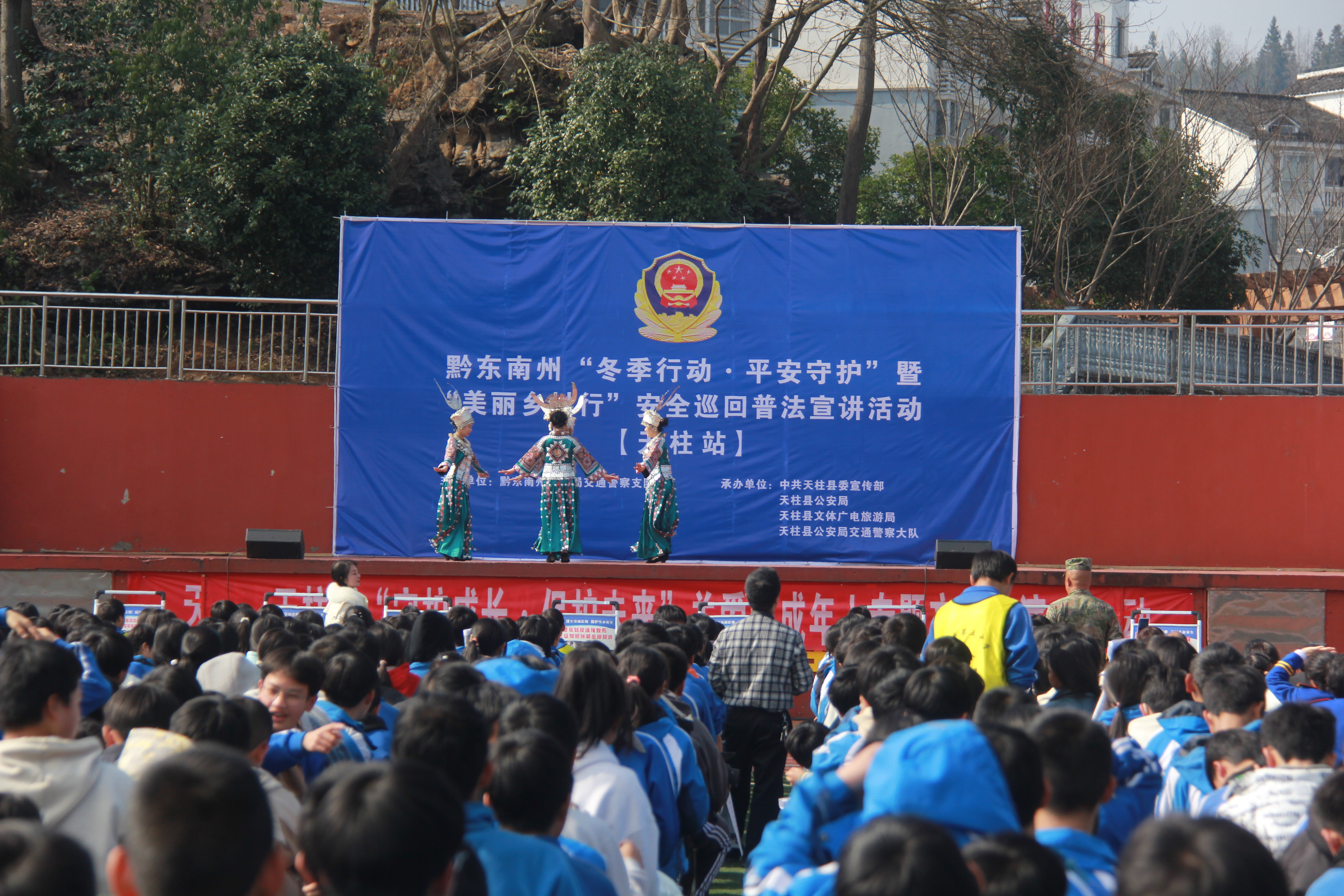 寒假将至,天柱县公安局交警大队结合正在开展的黔东南州“冬季行动·平安守护”暨“美丽乡村行”安全巡回普法宣讲活动,深入辖区各中小学开展寒假前夕交通安全宣传进校园活动,进一步强化广大师生交通安全意识,有效预防各类交通事故的发生。