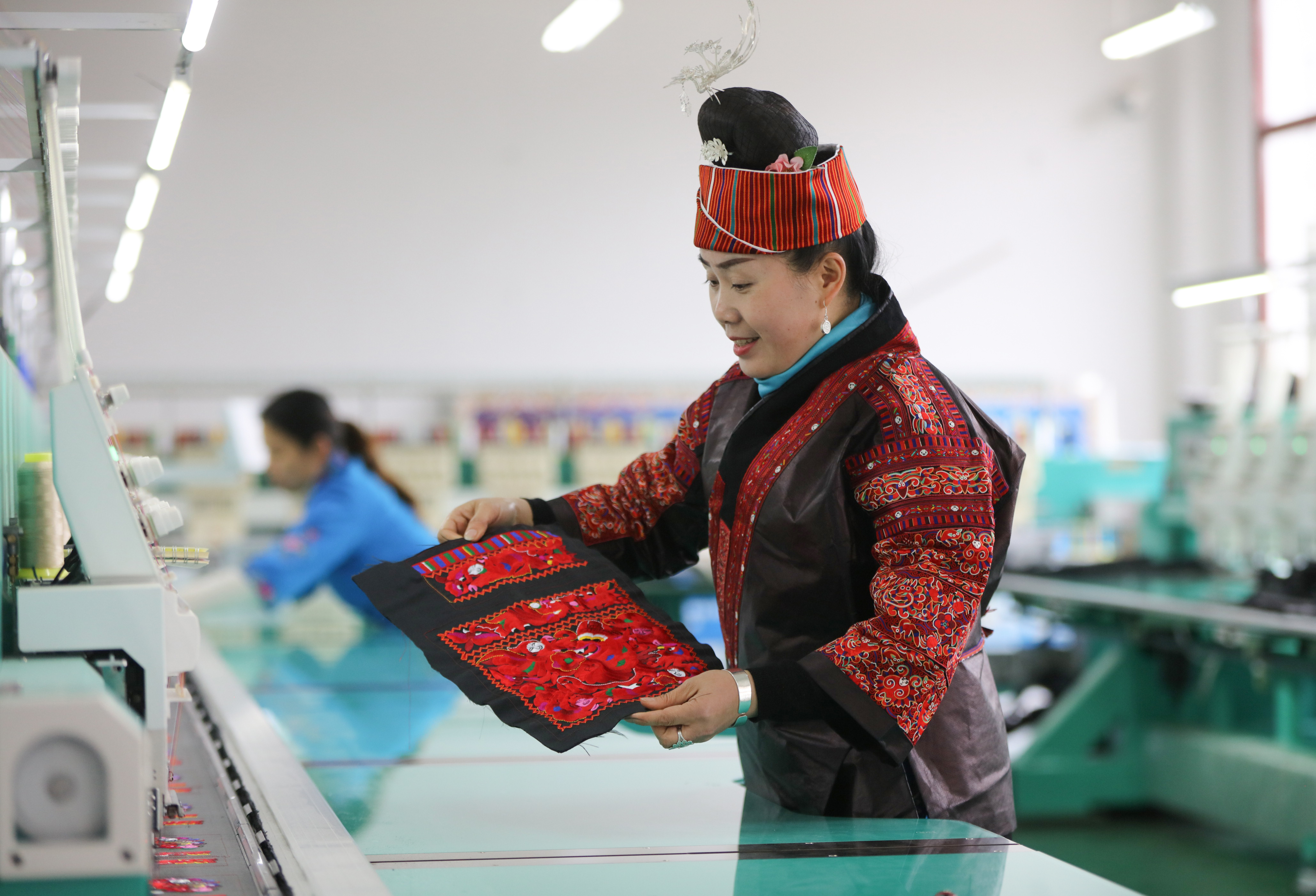 近年来,施秉县榜香郁苗绣服饰开发有限公司采取“公司+传承人+绣娘”发展模式,将传统手工刺绣和数字化生产线结合,实现标准化、产业化生产,通过订单帮扶和产业帮扶方式,带动当地2300余名苗族绣娘在家门口实现就业增收,助力乡村振兴。 据了解,该公司于2022年组织参选的《苗绣助力就业减贫——贵州省施秉县非物质文化遗产开发案例》入选第三届“全球减贫案例征集活动”最佳案例。