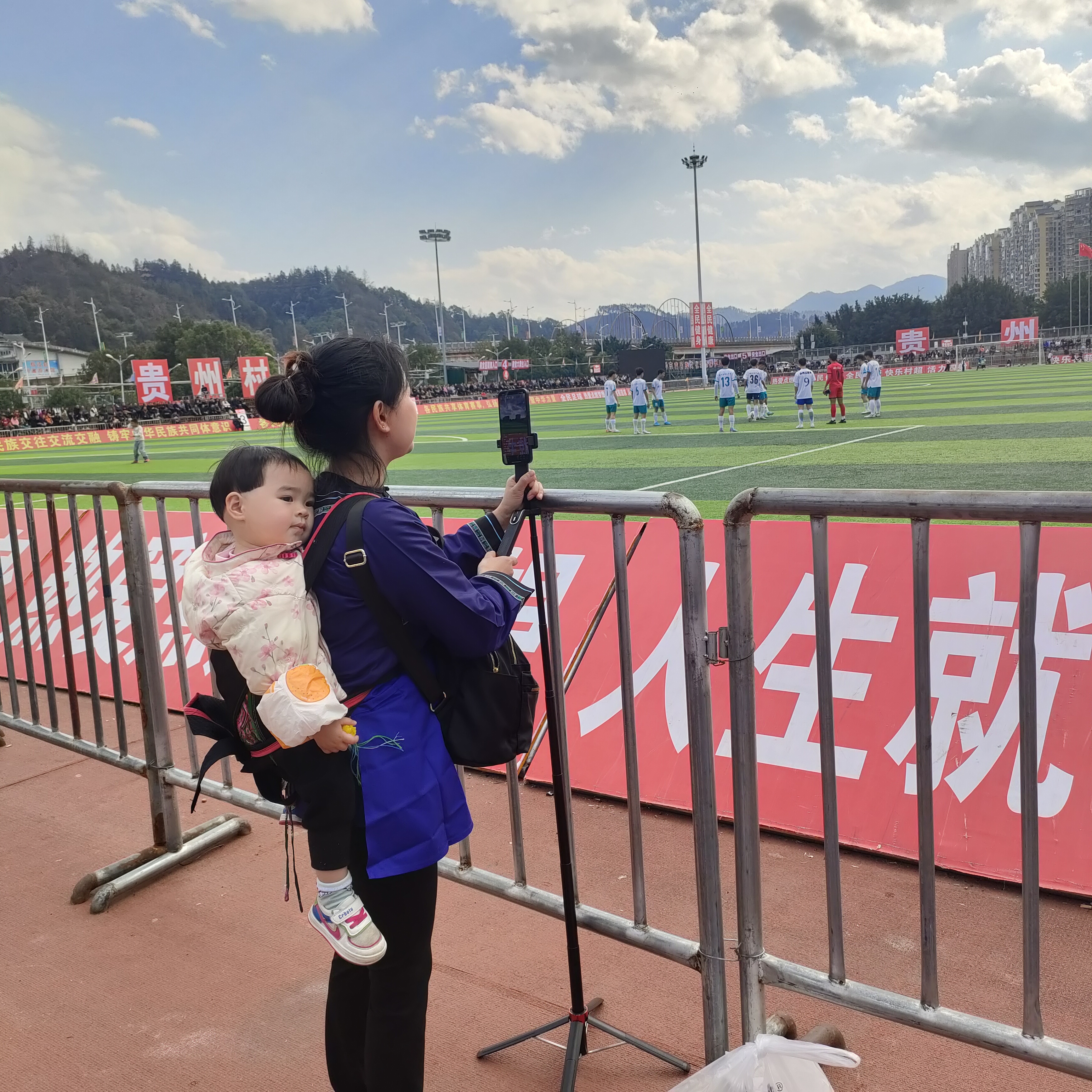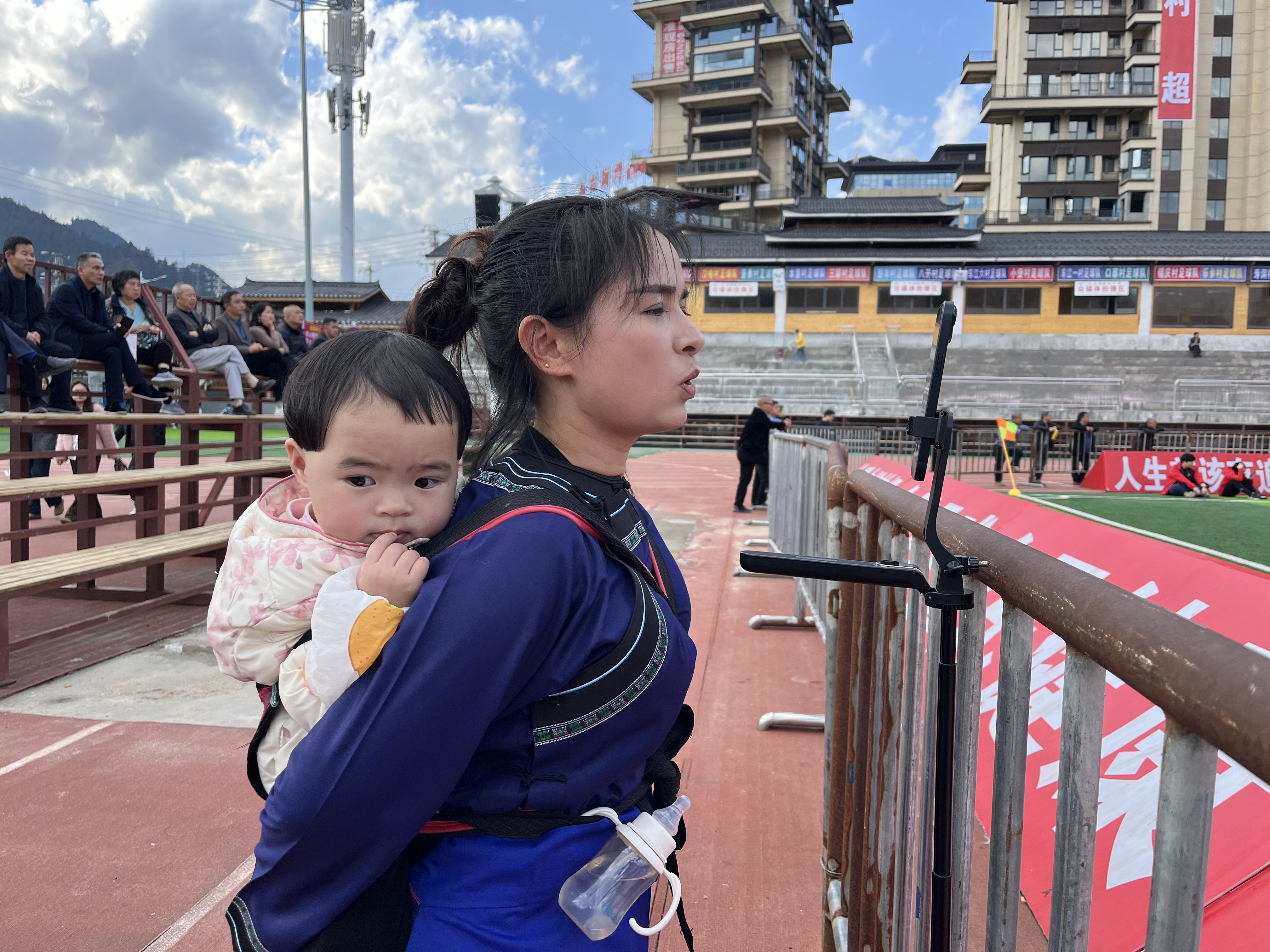“我每天都在球场上直播,我看的每一场球都感觉很精彩,夏天再怎么热他们也坚持踢球,现在冬天寒冷下雨了,他们也还是在球场上踢球,这种精神很敬佩,所以我每天都会努力做直播,传播他们的这种精神,让更多的人了解‘村超’。”杨昌香说,尽管自己已经是两个孩子的宝妈,但是喜欢足球,有时候家里没有人帮忙带娃了就直接背着娃娃一起做直播,直播‘村超’已经变成了她的生活乐趣了。