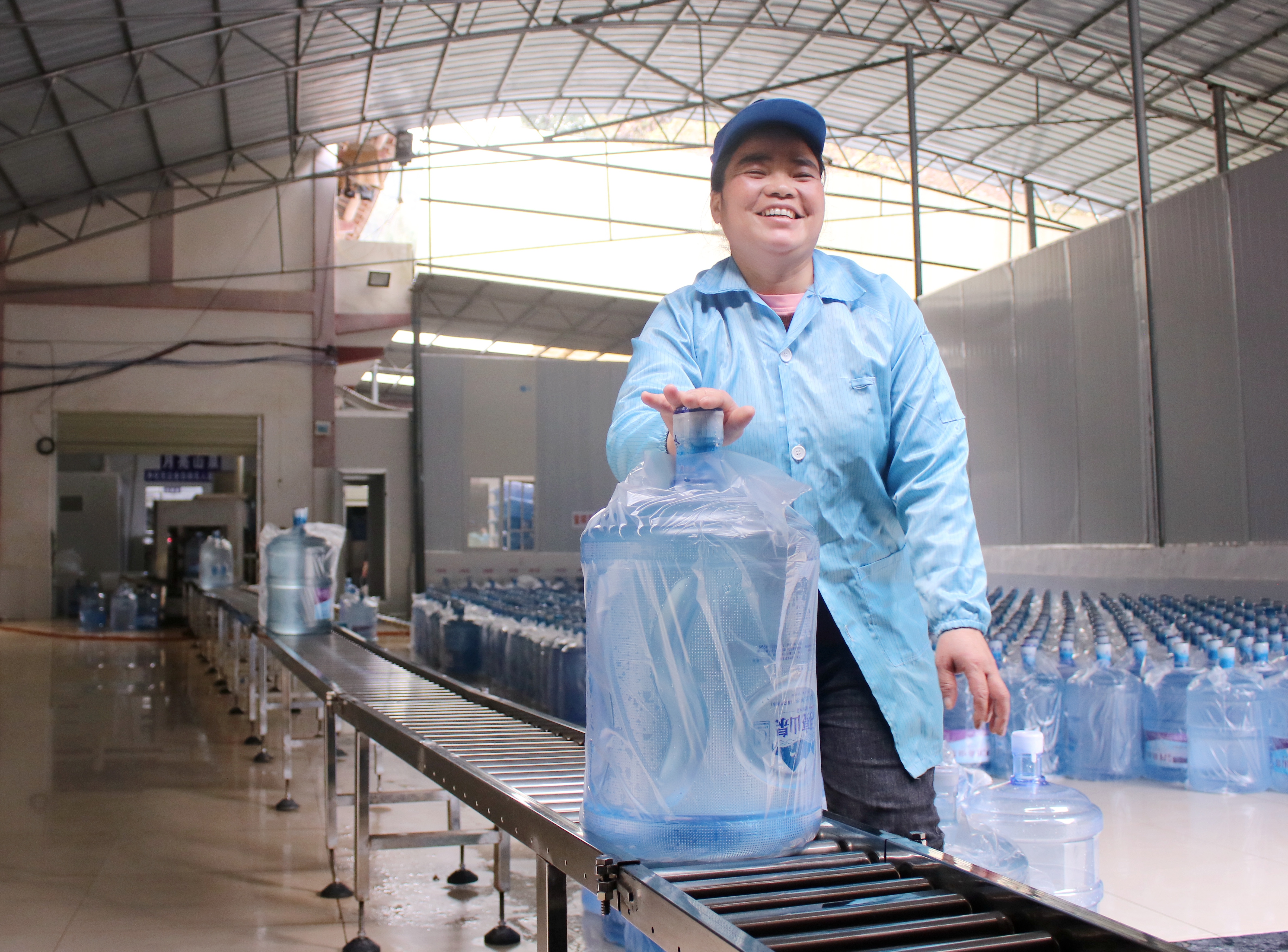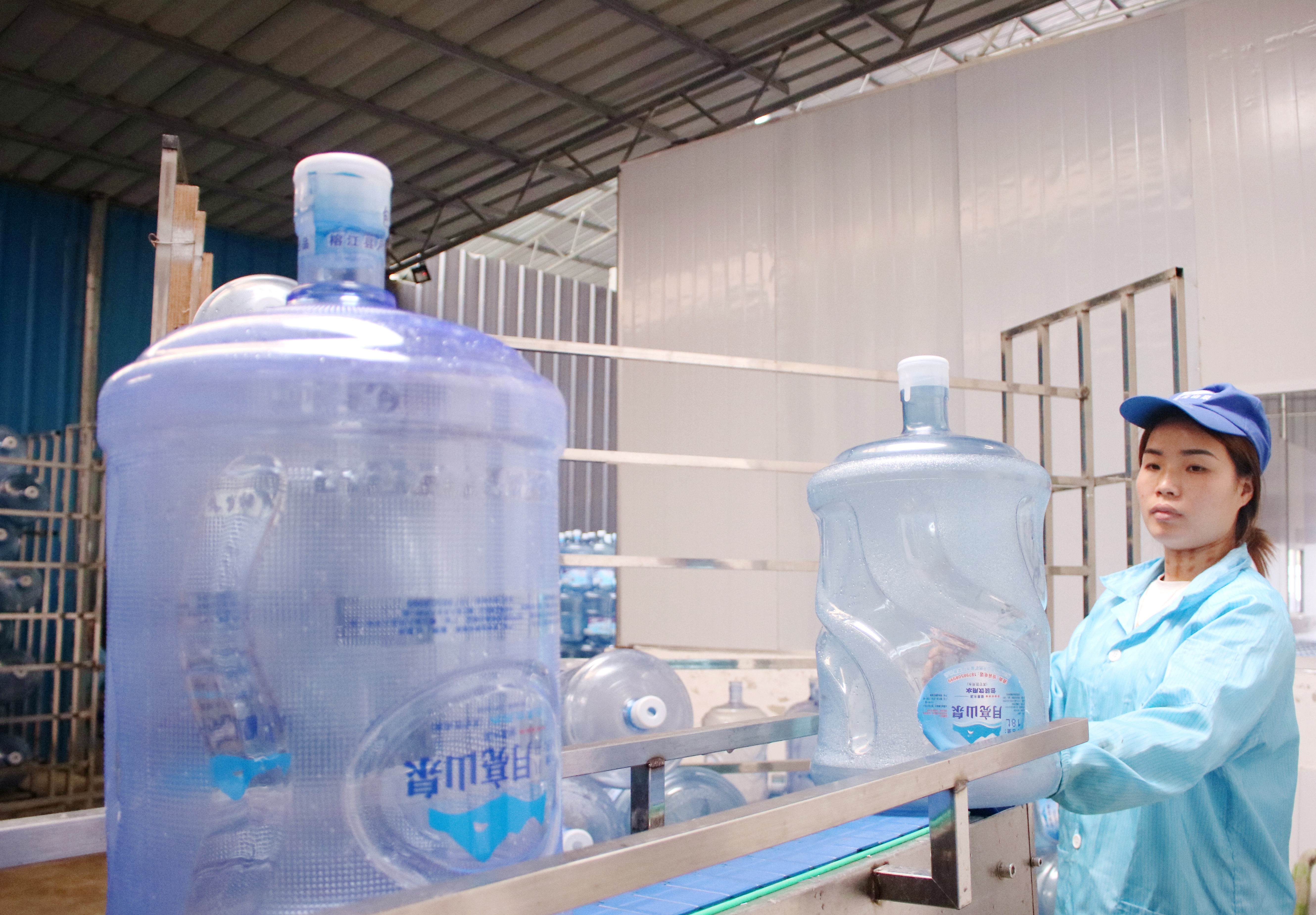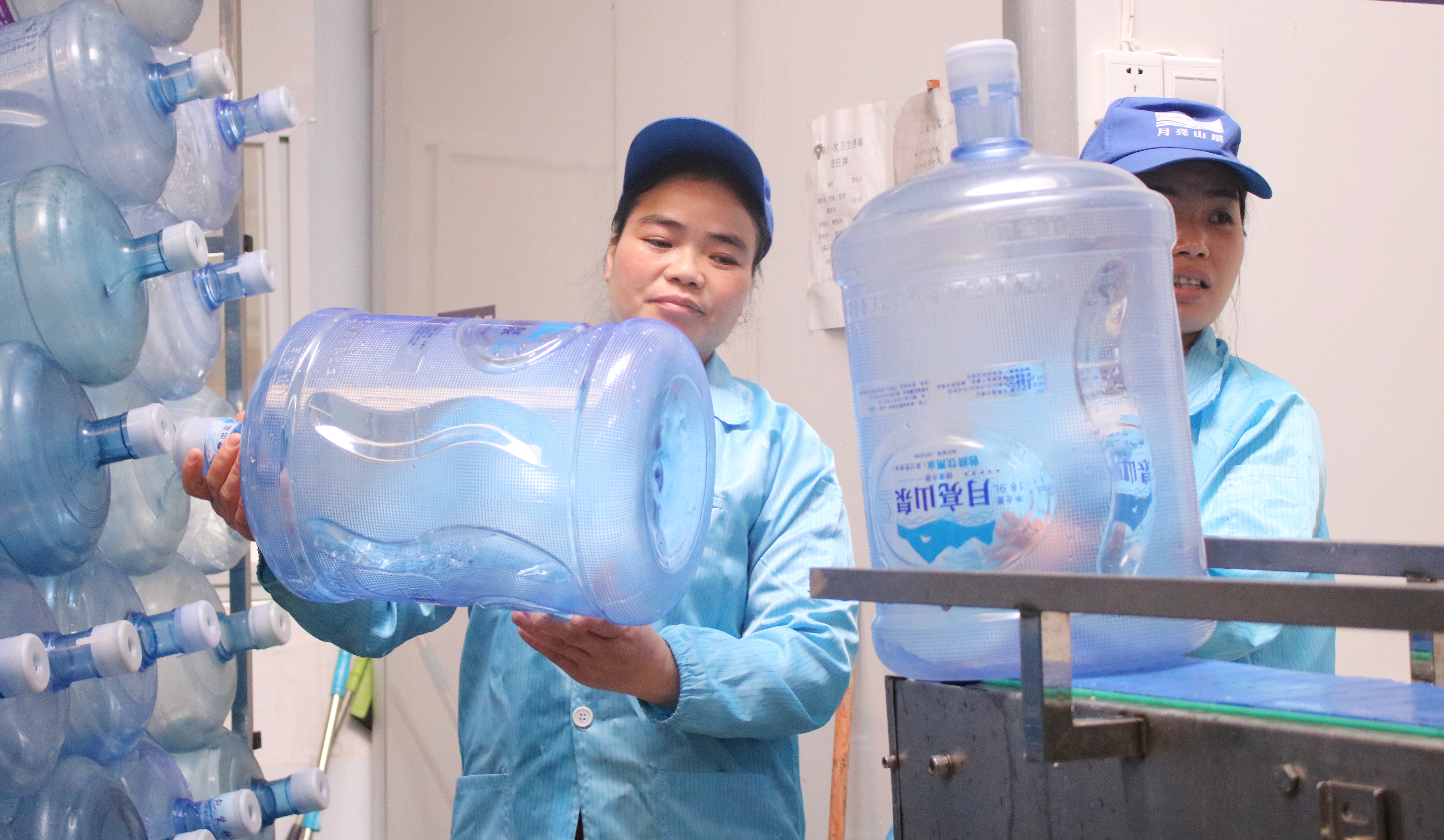 1月18日,在榕江县八开镇境内的榕江县月亮山天然矿泉水厂,工人们正忙着给矿泉水杀菌、灌装、检测、套标、装箱等,供应周边市场。