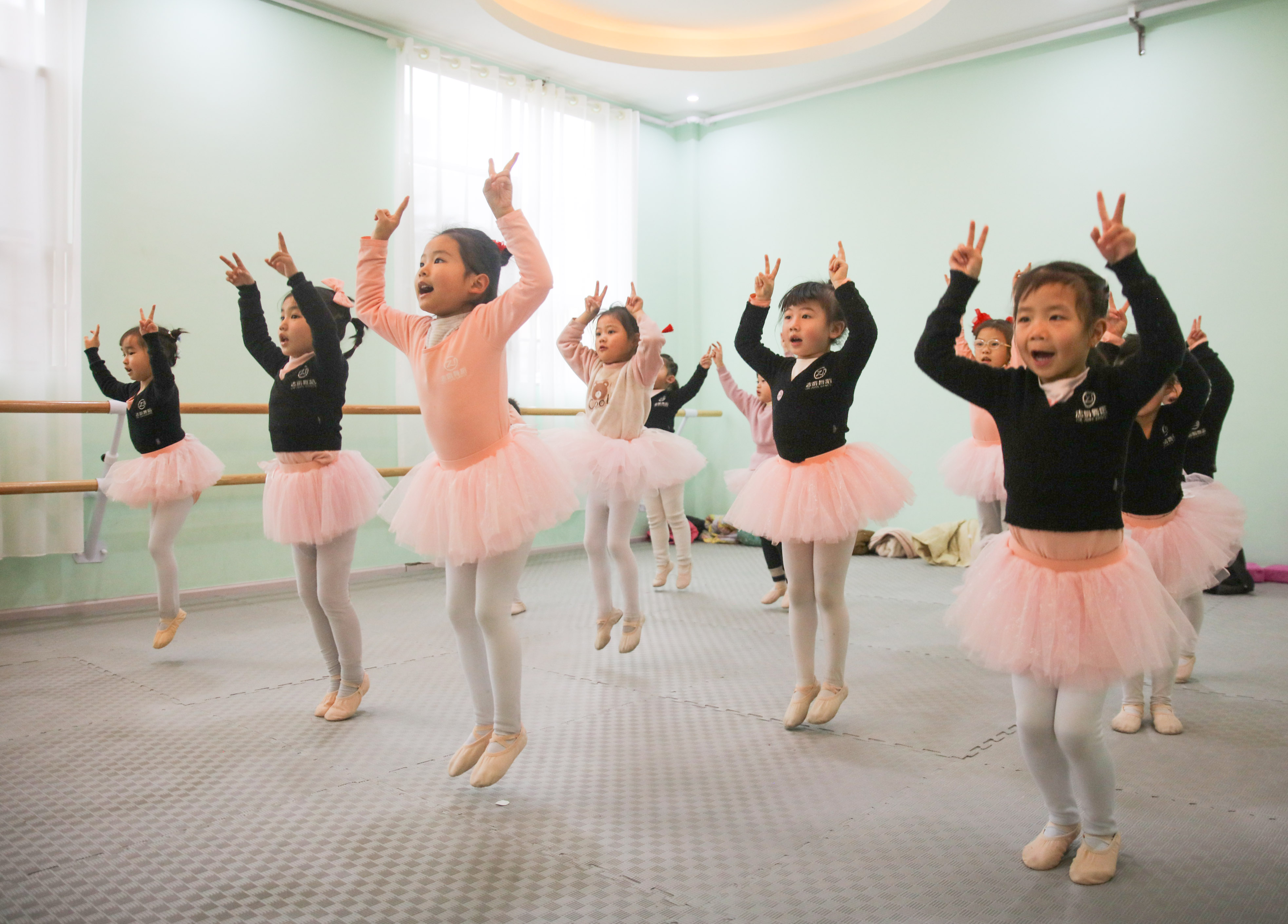 1月30日,学生在施秉县一家舞蹈培训中心练习舞蹈的基本功