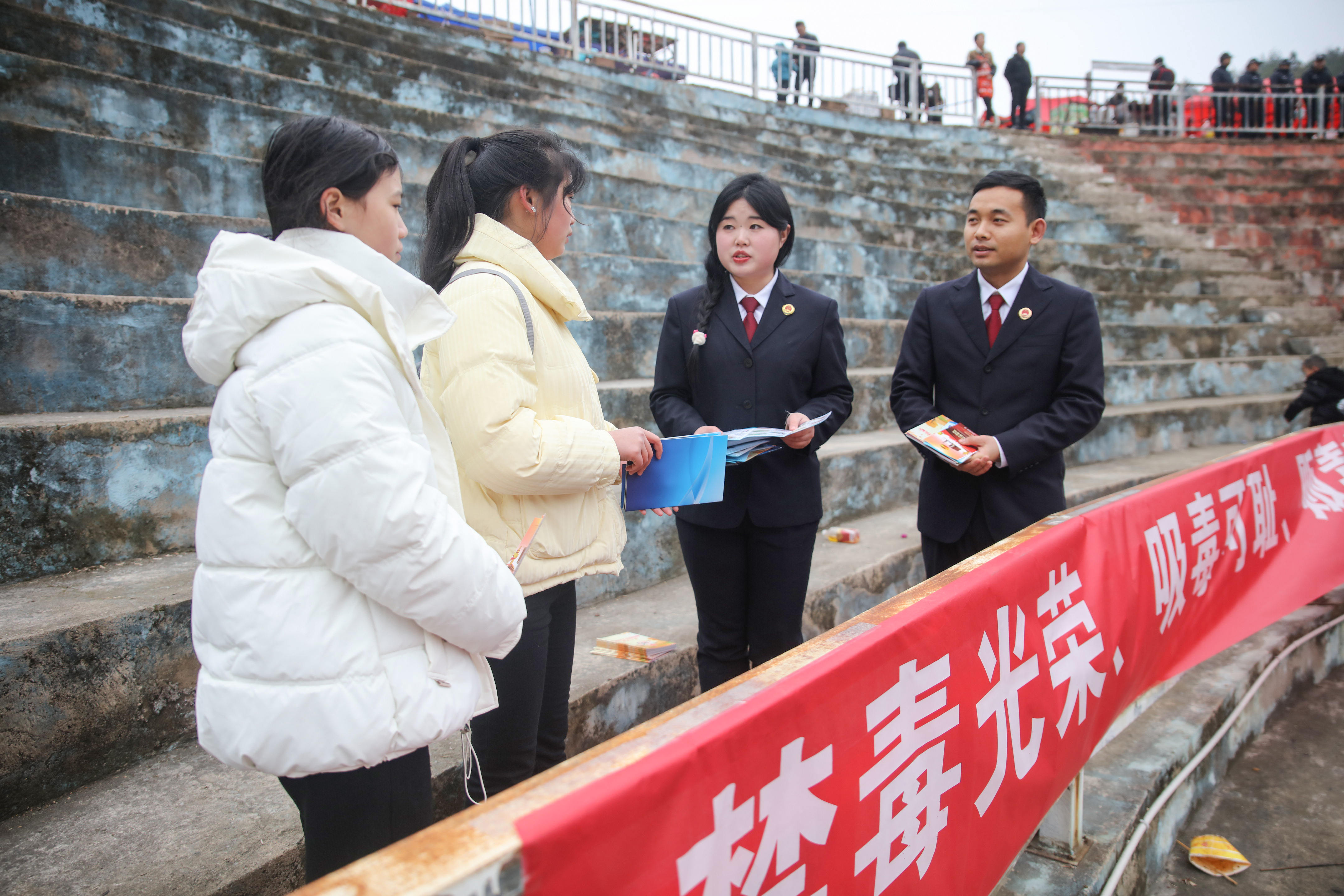 春节临近,施秉县检察院组织干警利用民俗活动和赶集日开展普法宣传活动,为群众普及禁毒、反诈、防范非法集资等法律知识,细心解答群众提出的法律咨询,提高群众法治意识,提升自我防范能力,确保群众安全祥和平安过节。