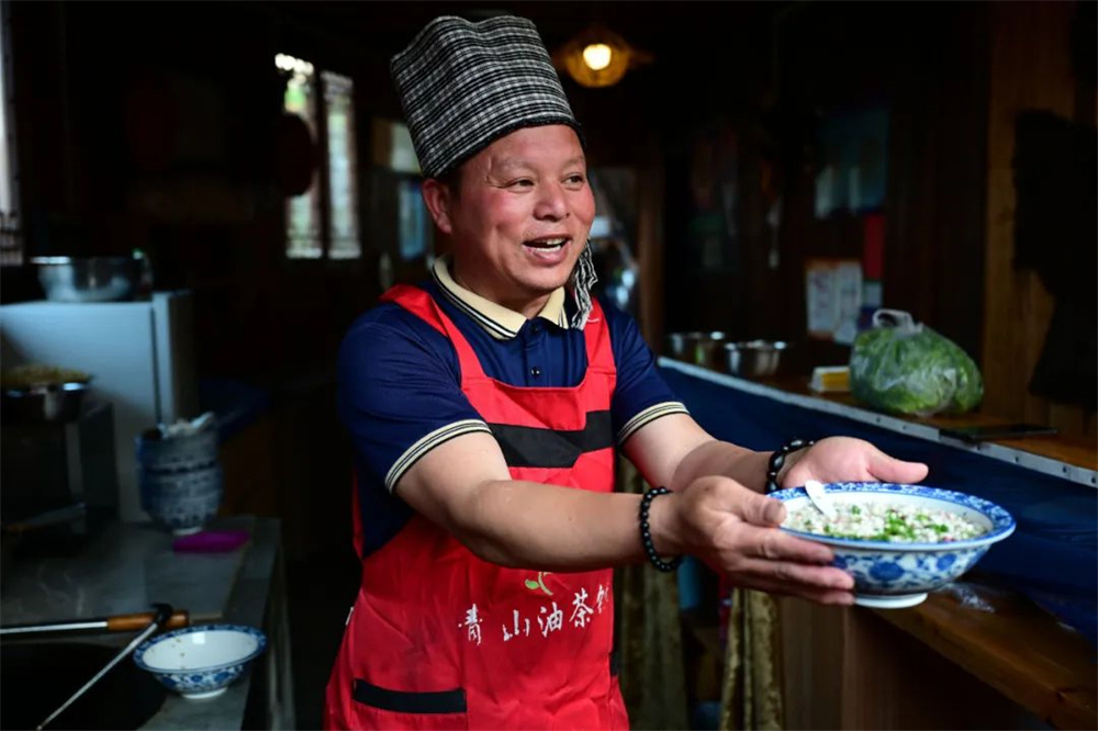 “油茶是我们的特色小吃,来玩的游客都要到店里吃上一碗,一天有500多元收入。”青山油茶铺老板刘青山开心地说。