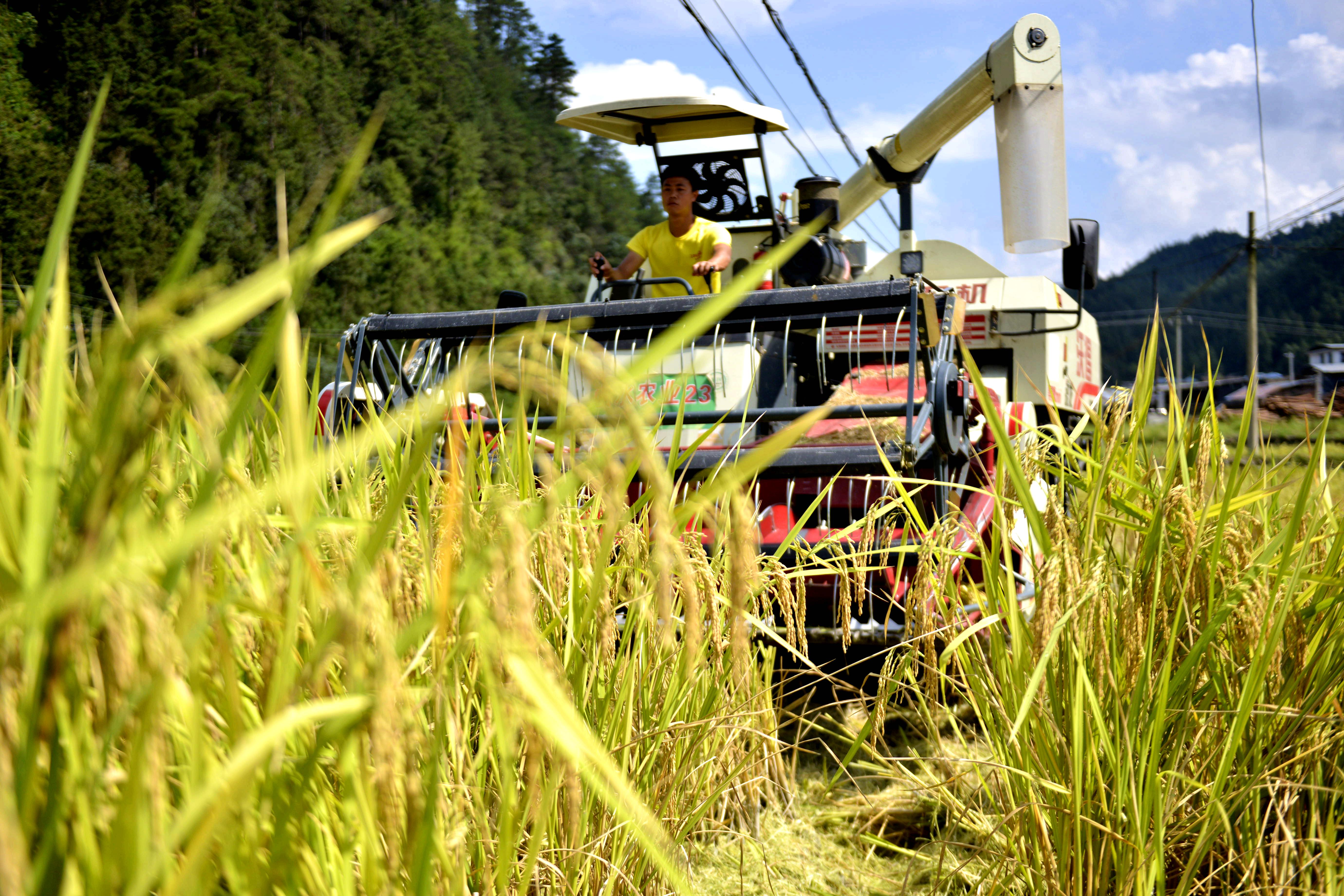近年来,榕江县于秋收期间,积极引进农业社会化服务,通过政府引导协调机械助力农户收割水稻,提升水稻收割效率,确保粮食安全和水稻“颗粒归仓”。