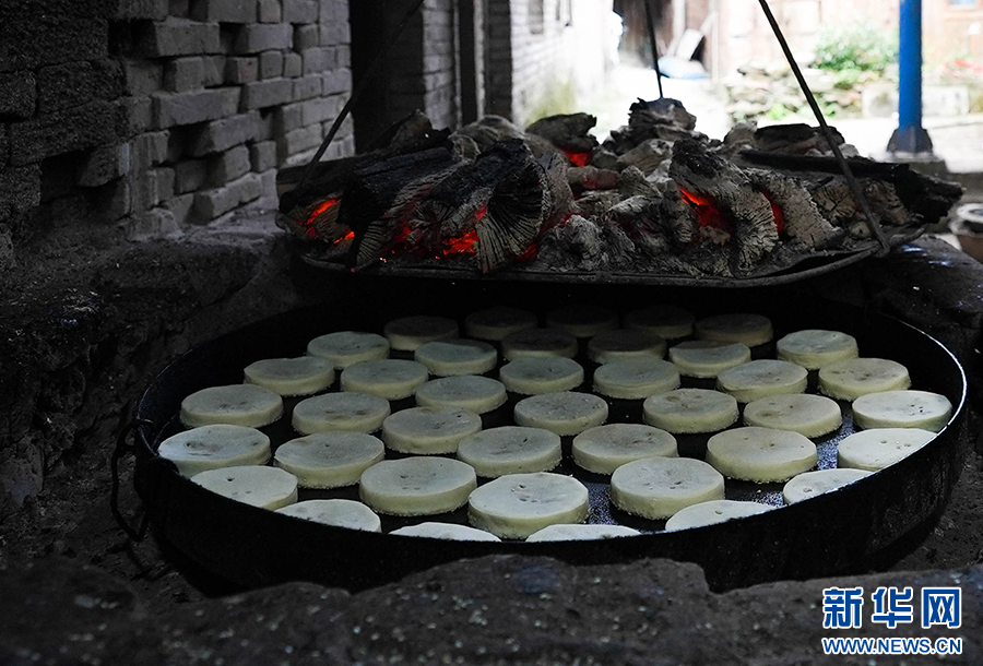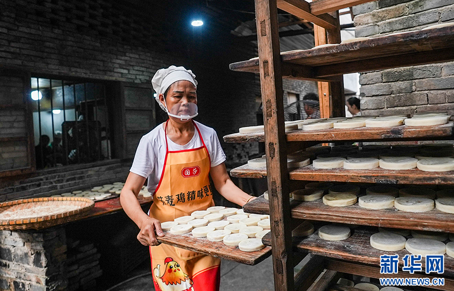 贵州省榕江县寨蒿镇是历史悠久的商贸古镇,其“寨蒿古法炭烤麻饼”已有200余年的历史,现在仍然沿用炒面、制馅、包心、沾麻、炭烤等传统工艺制作。中秋佳节临近,寨蒿镇的多家作坊忙着制饼供应市场,产品深受当地及周边群众喜爱。