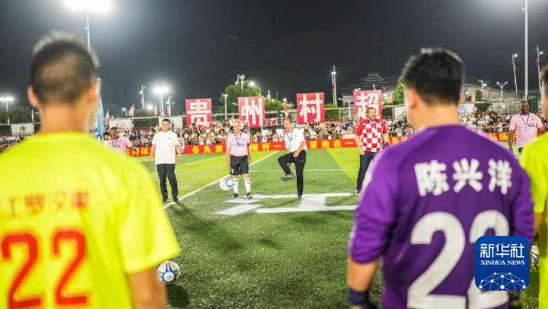 28日晚,在贵州省黔东南苗族侗族自治州榕江县的“村超”足球场,一场由驻华外交官足球队与当地“村超”罗汉果足球队携手上演的足球友谊赛打响。这是作为草根足球的“村超”迎来的首支驻华外交官队。