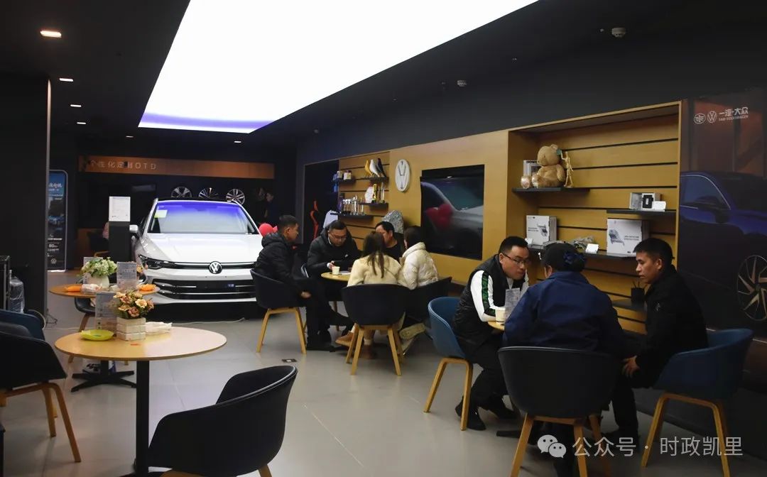 12月5日,在凯里经纬国际汽车城一汽大众4S店销售展厅里,随处可见的“以旧换新”标识优惠信息吸引了不少群众前来试乘试驾,销售人员热情地向顾客介绍“以旧换新”的优惠政策及新车亮点,前来咨询、看车、购车的顾客络绎不绝。
