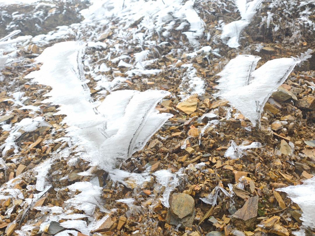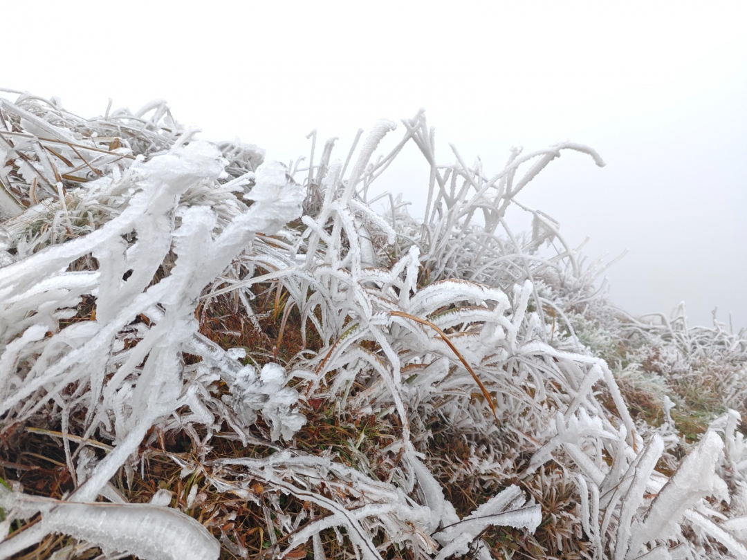 山头的树木草藤冰雕玉钕,漫山遍野可谓银色一片。