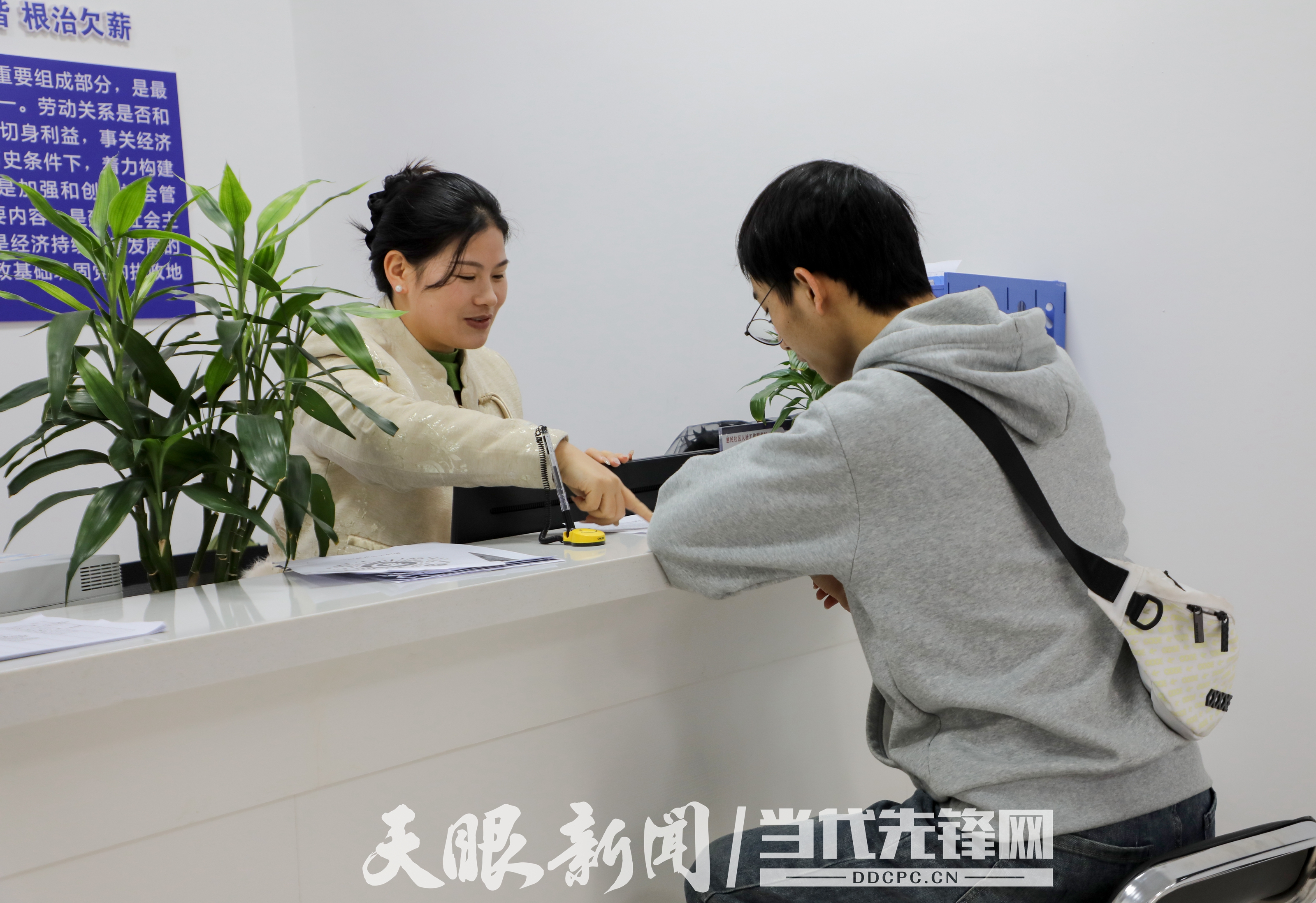 同样在天柱县联山街道惠民社区人社工作服务站,工作人员正耐心地向前来咨询就业岗位的群众进行讲解、教群众扫码进入零工市场、向群众介绍各种就业岗位。